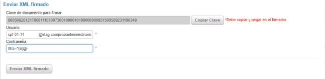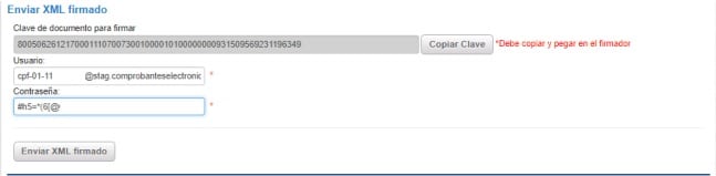 Para proceder con el envío del comprobante, debe ingresar en el cuadro que se detalla a continuación, el usuario y contraseña que fueron descargados del sistema mencionado en el párrafo anterior.