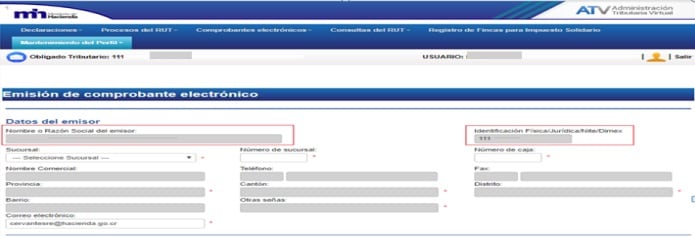 Datos del emisor (usuario/contribuyente): esta información se carga automáticamente