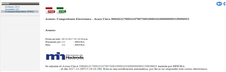 Con solo presionar los botones PDF y XML se pueden descargar los archivos para que estos puedan ser guardados en el equipo de cómputo.