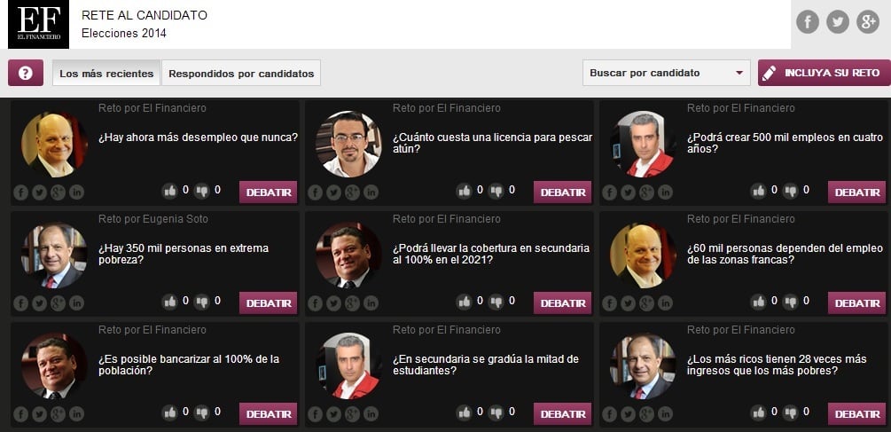 La aplicación se puede utilizar en la dirección electrónicahttp://media.elfinancierocr.com/retealcandidato/
