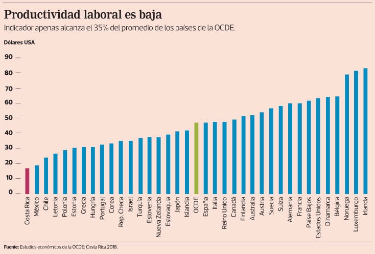 Pese a esta recuperación en la productividad, Costa Rica todavía está lejos su aspiración: la OCDE, que registra niveles más altos.