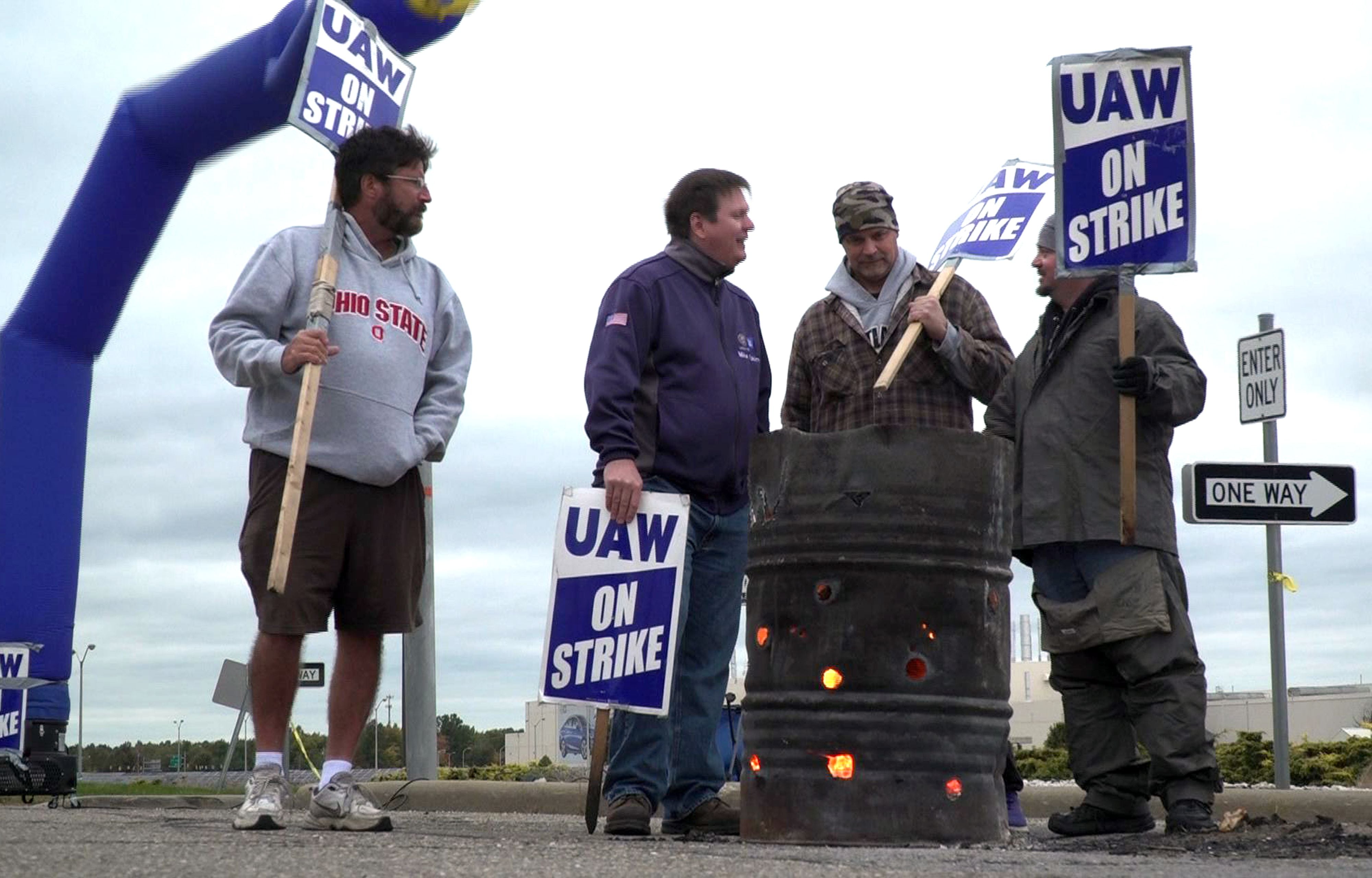 Los obreros de General Motors hicieron más de un mes de huelga aquí, en piquetes con carteles y acurrucados junto a braseros improvisados.