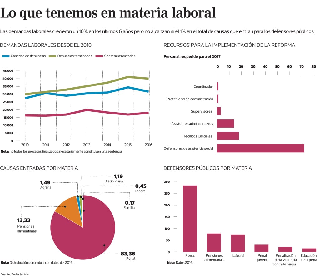 La repuesta es no. Por ello, el Poder Judicial aseguró que salió a reclutar abogados que quieran convertirse en defensores públicos en materia laboral. Así, la entidad sumó 72 nuevas plazas para hacerle frente a ese lineamiento solo durante este 2017. Una cifra muy por debajo a la que había sostenido la entidad era idónea para ese año: un mínimo de 100.