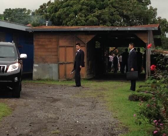 El presidente de China, Xi Jinping y su esposa Peng Liyuan fueron recibidos cerca de las 4 p. m., en la casa de una familia cafetalera, ubicada en Barrio el Socorro de Heredia, justo a la par de la Escuela de Policía.