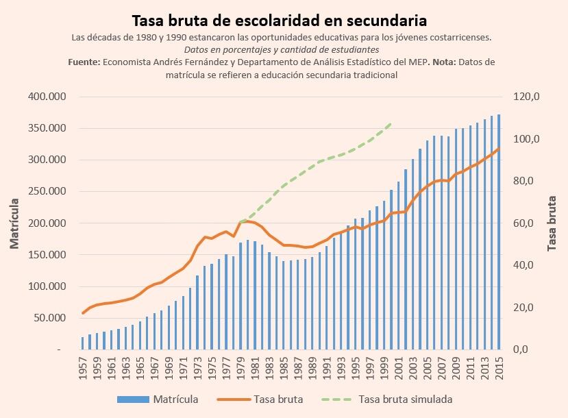 En esas dos décadas, la tasa bruta de escolaridad se estancó, impidiendo que más de un tercio de los jóvenes entrara al colegio.