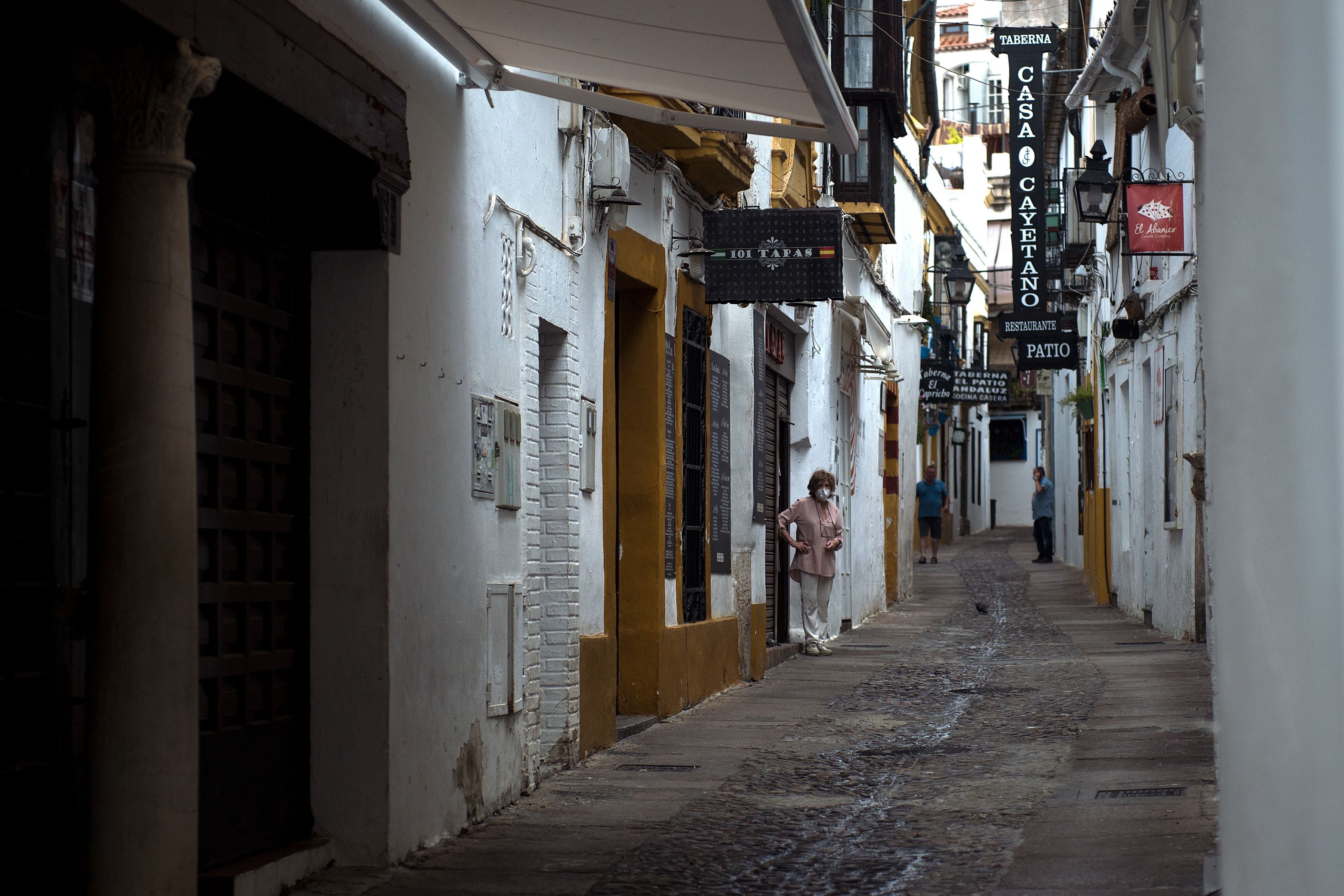 En tiempos normales, el Bar Santos, frente a la mezquita de Córdoba y toda una institución de la tortilla de patatas, es un hervidero de clientes. Pero con el coronavirus “está todo muerto”, dice su dueño.