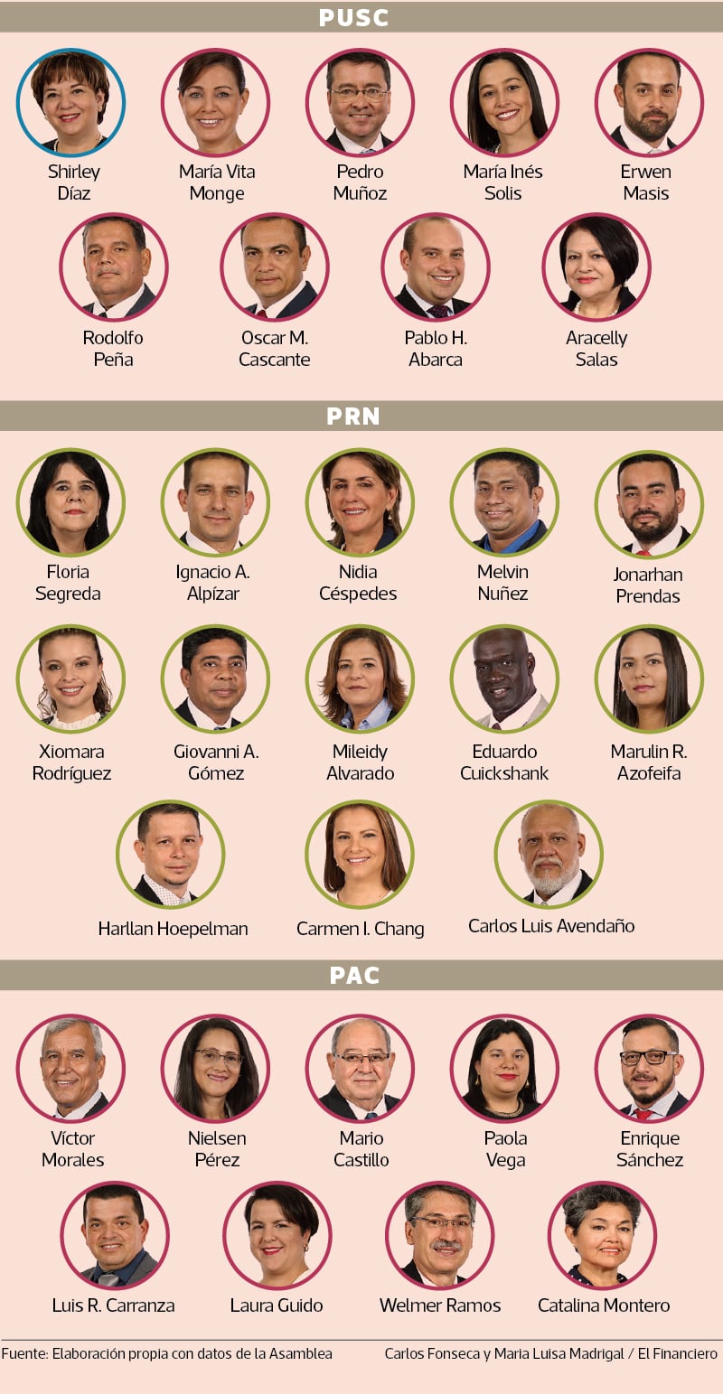 La diputada del PLN Franggi Nicolás, la legisladora del PUSC Shirley Díaz, el diputado del PRSC Otto Roberto Vargas y la diputada del PRN Ivonne Acuña son los que más veces se salieron del canasto.