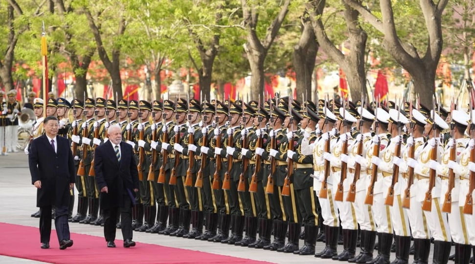 Lula fue recibido el viernes por el presidente Xi en una ceremonia con alfombra roja ante el Gran Salón del Pueblo de Pekín, donde una banda militar tocó los himnos nacionales de Brasil y China.