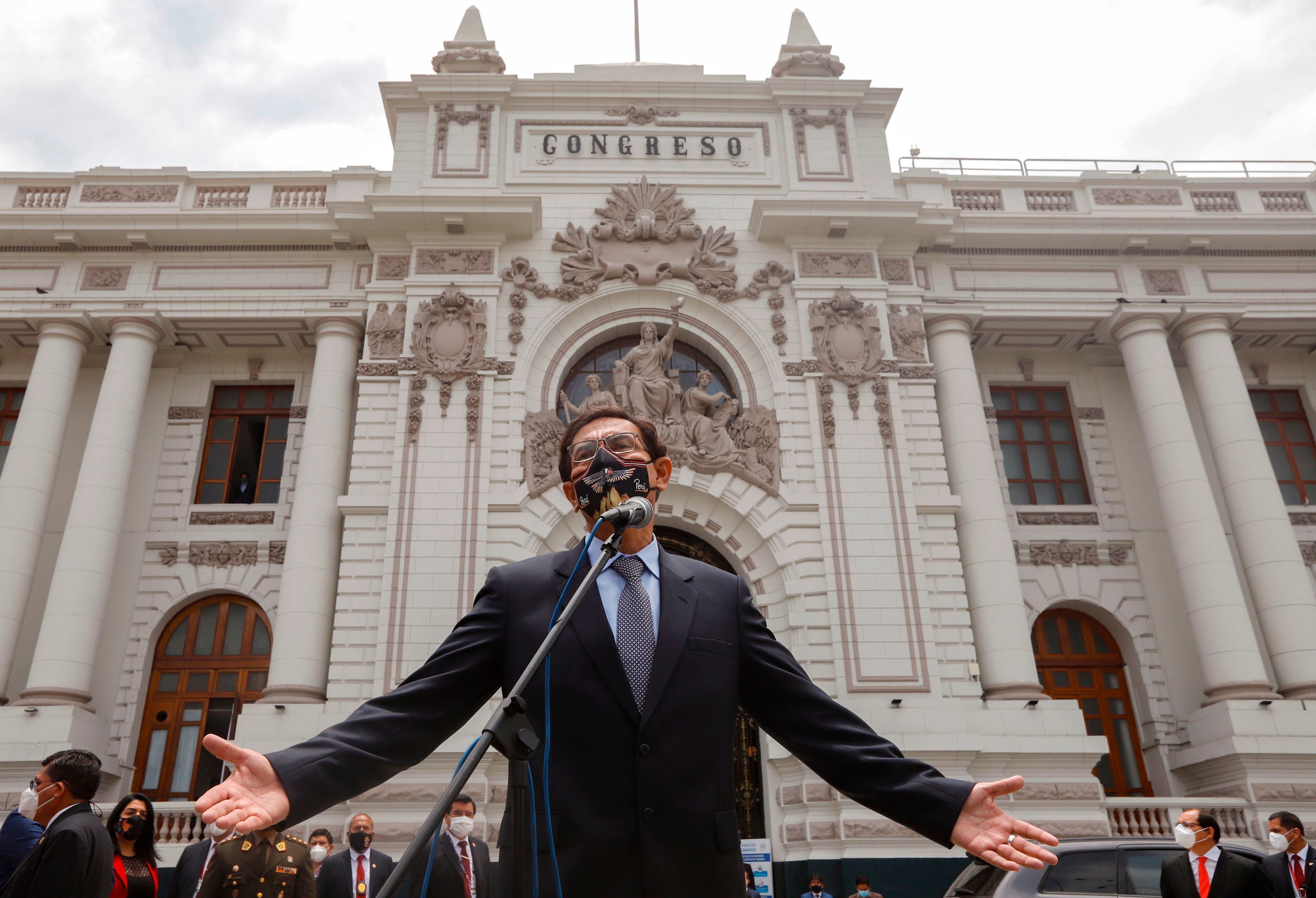 El Congreso destituyó a Vizcarra la noche del lunes por "incapacidad moral" al cierre de un segundo juicio político en su contra en menos de dos meses, tras denuncias de que había recibido sobornos cuando era gobernador de la región sureña de Moquegua en 2014, cargos que él niega.