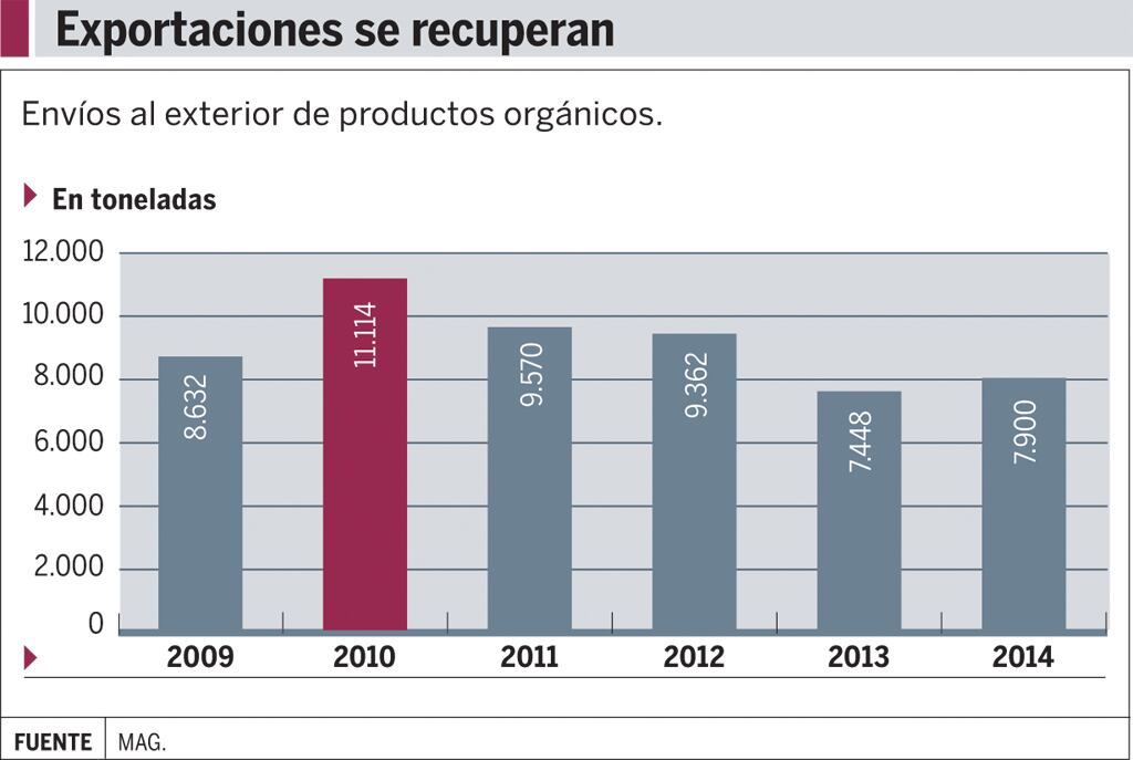 Al 2013, último dato aportado por el MAG, la producción orgánica reunía a 2.159 agricultores a nivel nacional.