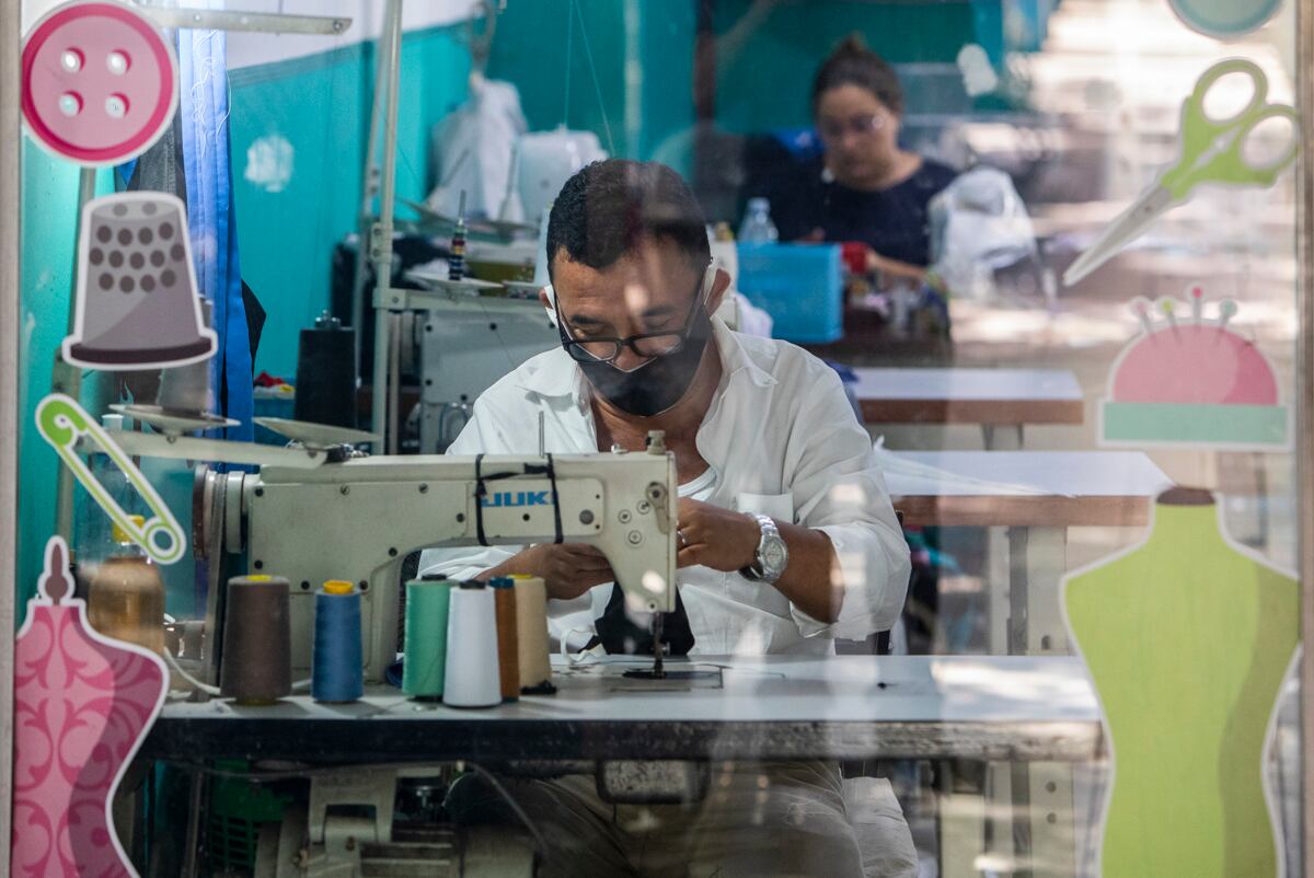 En los comercios no hay alcohol en gel y las mascarillas son inaccesibles para la mayoría, que acuden a costureras como Yahosca Sánchez, quien fabrica tapabocas de tela y los vende a 29 centavos de dólar.