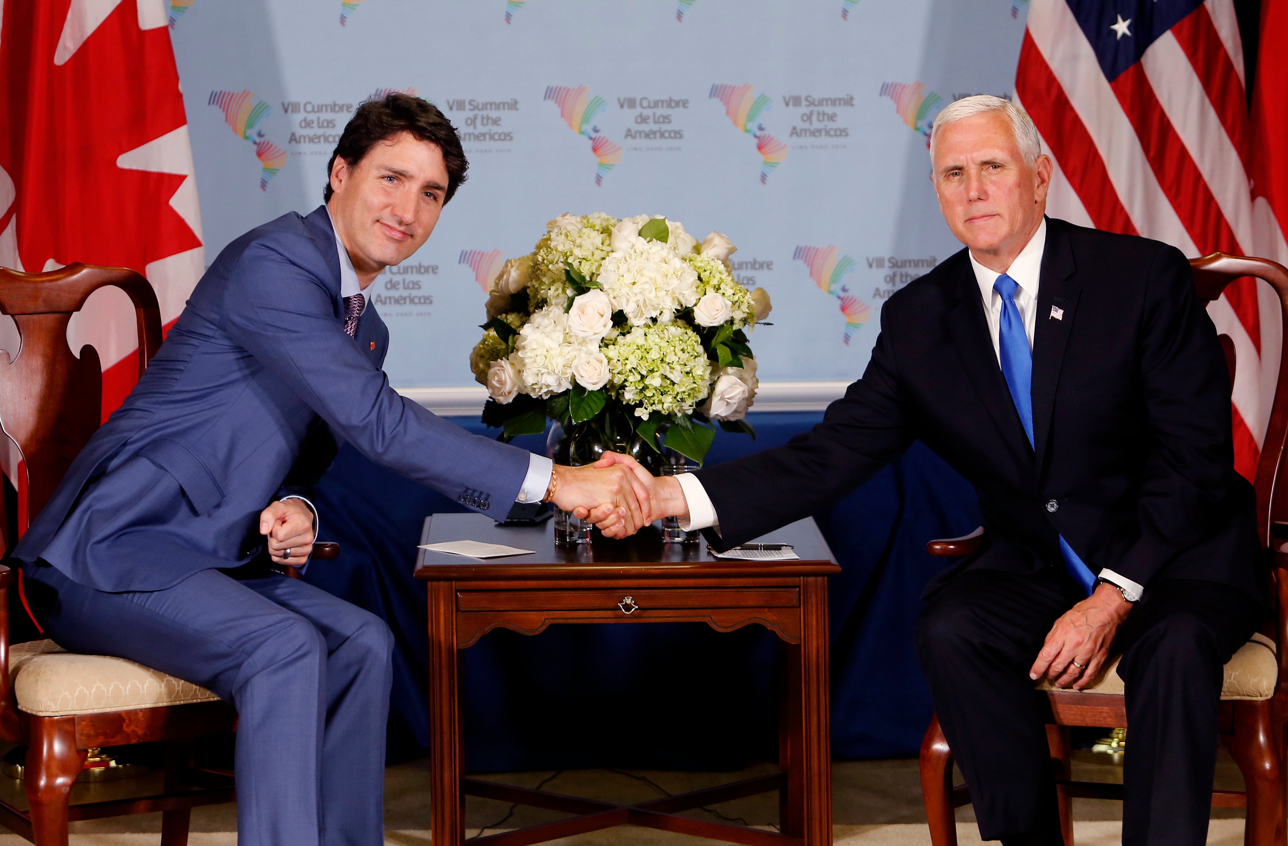 El vicepresidente estadounidense, quien representa en la cumbre al presidente Donald Trump, se reunió también este sábado en Lima con Justin Trudeau, primer ministro Canadá, el tercer socio del Nafta, vigente desde 1994.