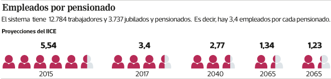 A mayo de 2017 se reportaban 12.784 cotizantes y 3.737 jubilados y pensionados. Es decir, por cada jubilado hay 3,4 cotizantes.