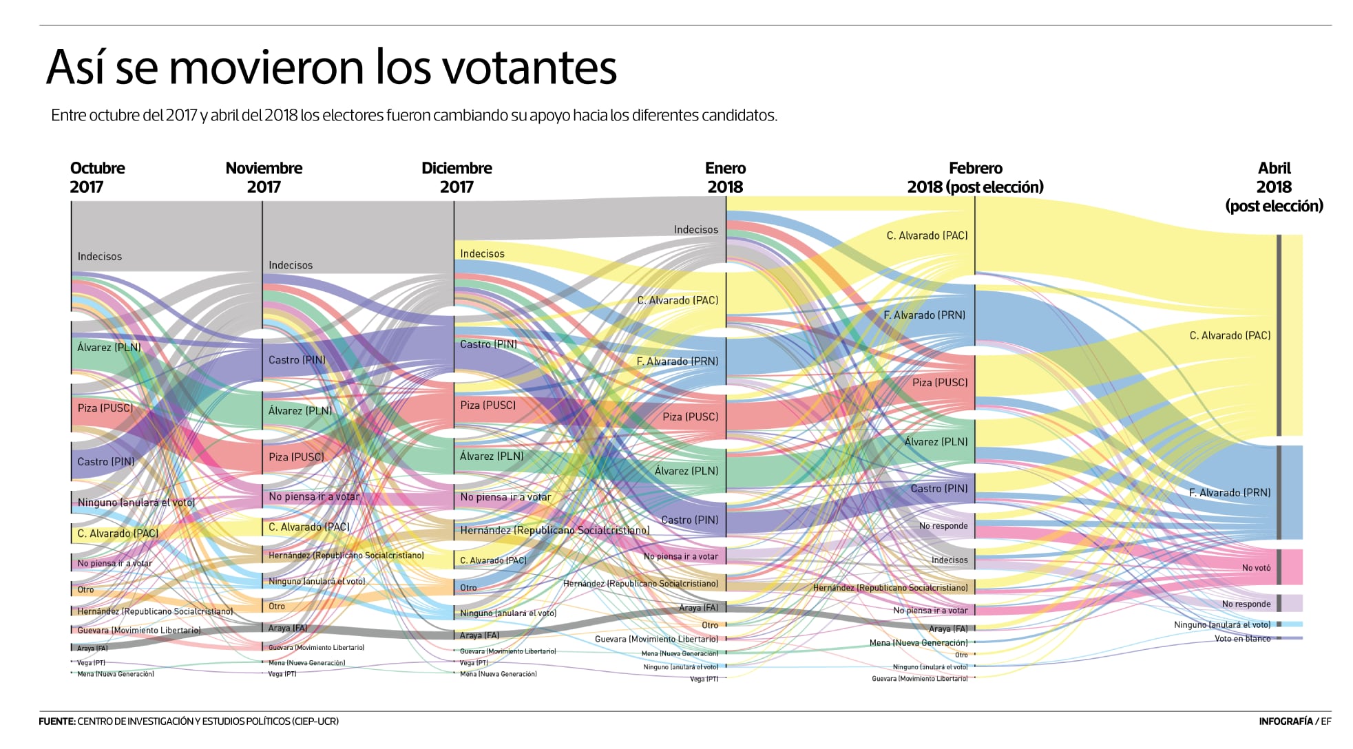Así se demostró con las encuestas de panel elaboradas por el Centro de Investigación y Estudios Políticos (CIEP-UCR) entre octubre del 2017 y abril del 2018.