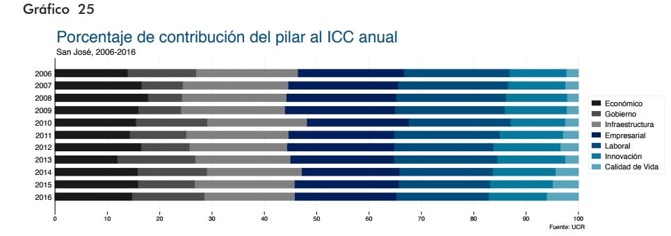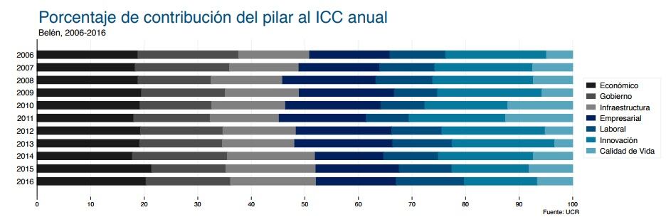 En los diez años consecutivos que se cuantificaron en esta versión del ICC, Belén ha mantenido la primera posición en el pilar económico, seguido por San José.