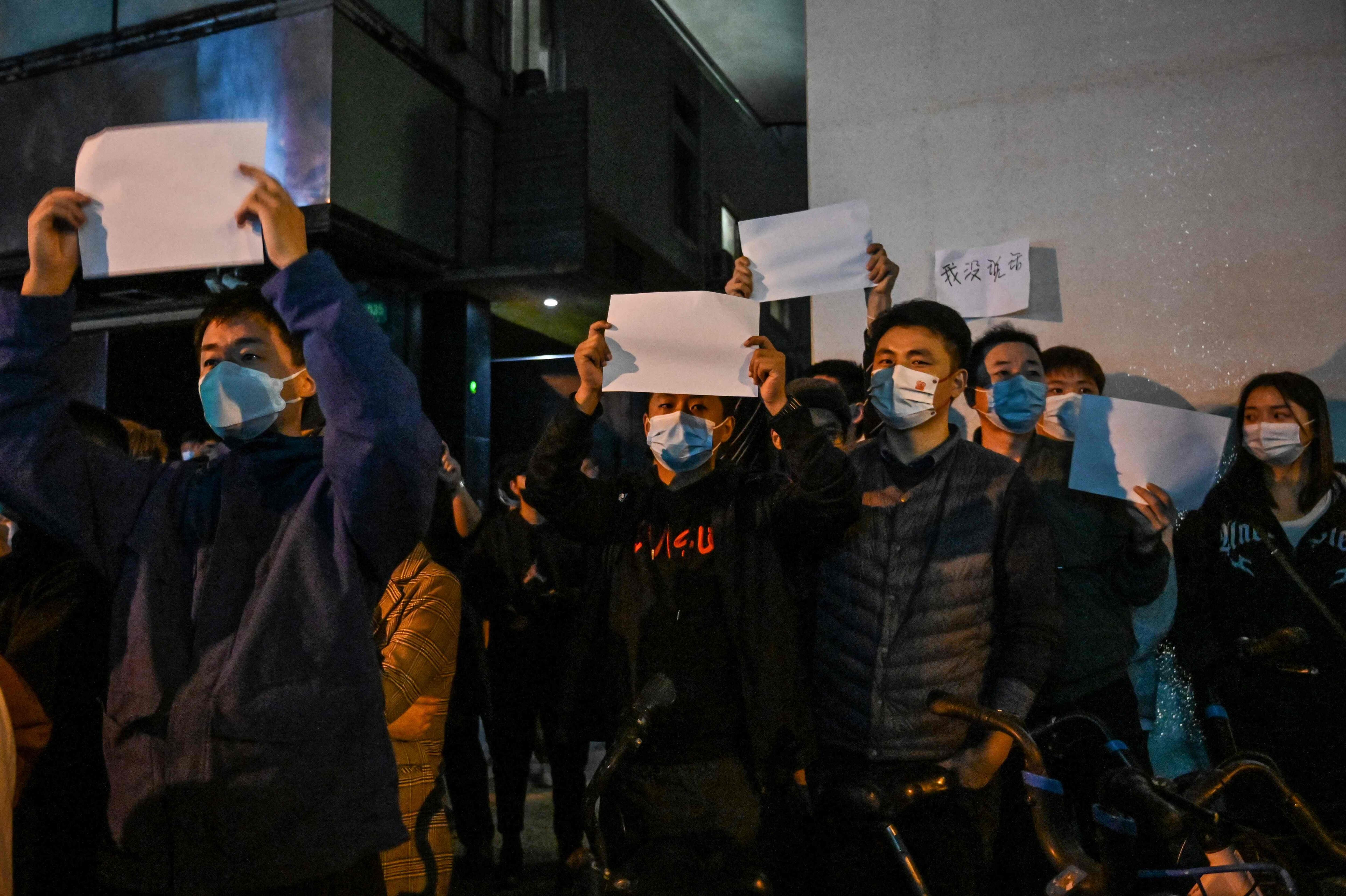Según explicó un testigo a la AFP, los manifestantes mostraban hojas en blanco —un gesto que se ha convertido en un símbolo de protesta contra la censura en China— y flores blancas.