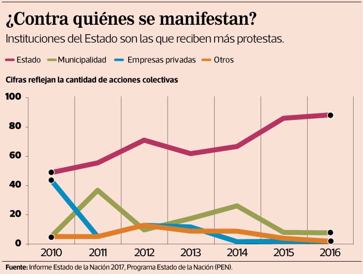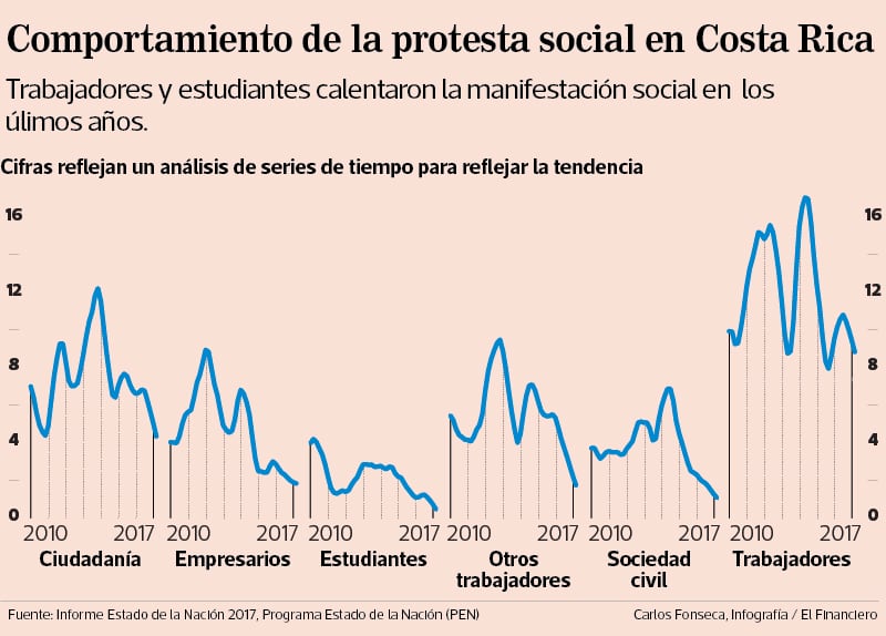La historia del país recuerda protestas sociales que llevaron a la polarización, dentro de esta carpeta se encuentran las manifestaciones contra Alcoa, la huelga de maestros de 1995, el Combo del ICE, la movilización contra Riteve, el Tratado de Libre Comercio (TLC) con los Estados Unidos, el rechazo a la concesión de OAS para ampliar la carretera a San Ramón y, ahora, la reforma fiscal.