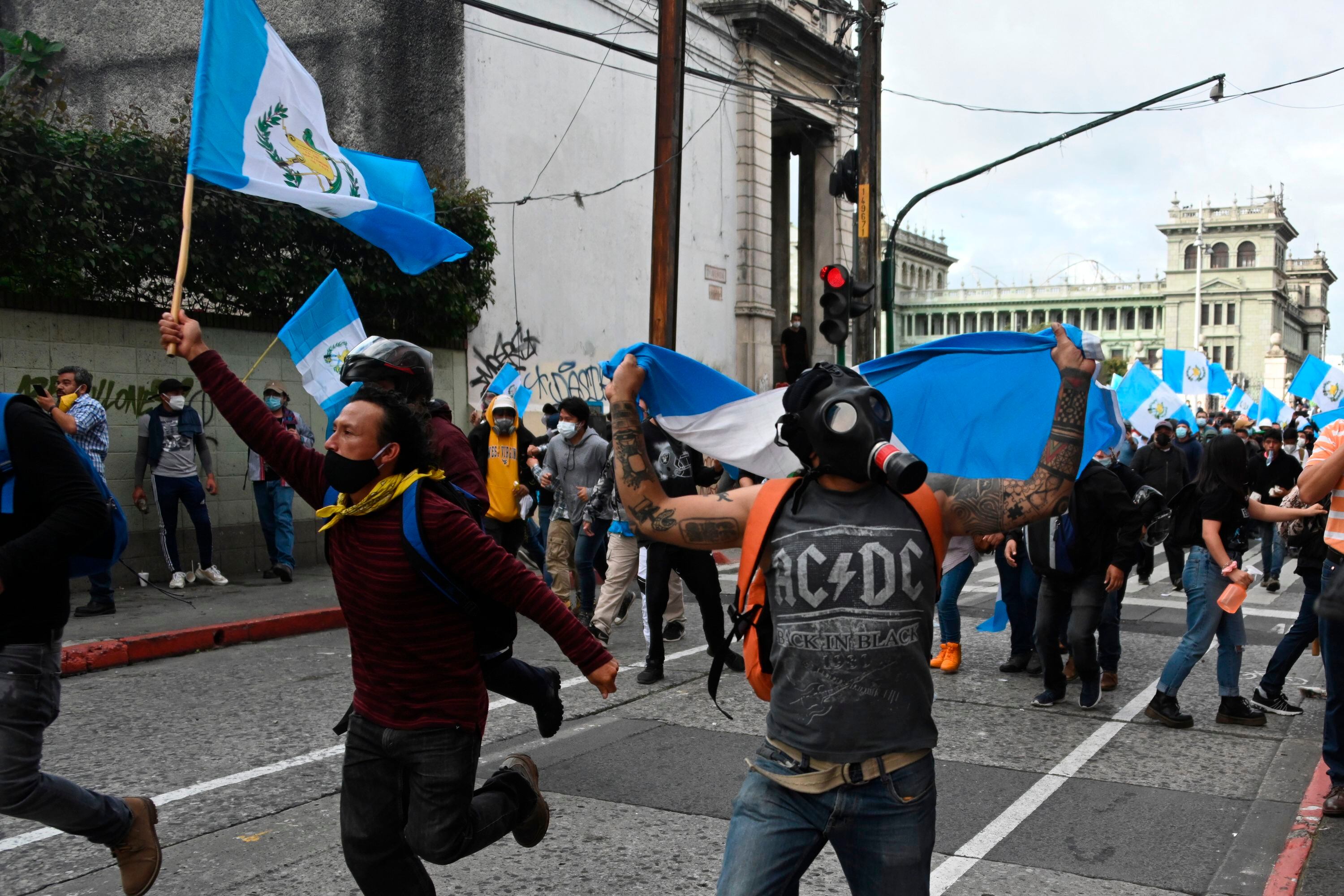 Las protestas del domingo transcurrían de forma pacífica, un día después de que un grupo de guatemaltecos quemara la sede del Congreso en protesta por la aprobación de un presupuesto que no contempla aumentos en las partidas sociales y prevé un fuerte endeudamiento público.