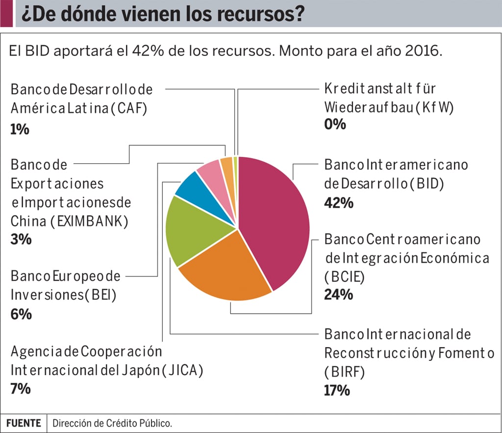 El financiamiento de los proyectos proviene de instituciones internacionales como el Banco Interamericano de Desarrollo (BID), el Banco Centroamericano de Integración Económica (BCIE) y otras seis similares. .