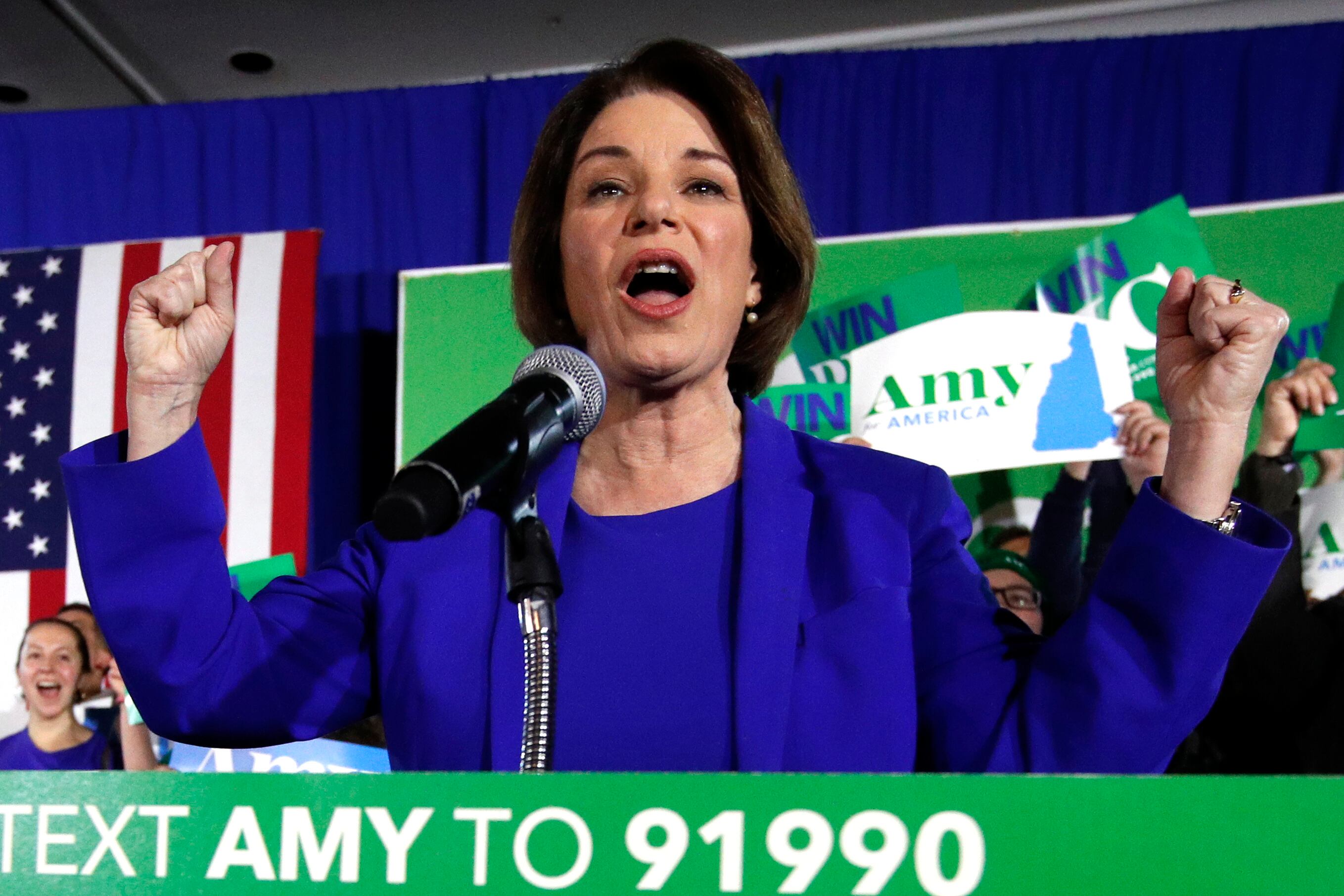 "Hola Estados Unidos, soy Amy Klobuchar y venceré a Donald Trump". Así, mostrando seguridad frente a una nube de banderas verdes, el color de su campaña, la senadora de Minnesota de 59 años se regocijó el martes por la noche por su tercer lugar en New Hampshire.