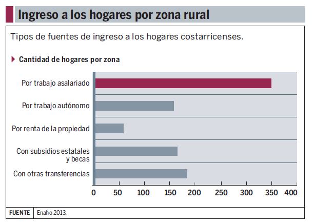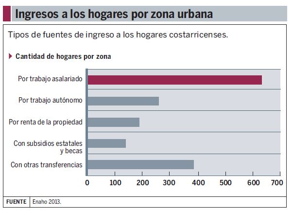 Asi, en el 2012 y el 2013, un 72% de los hogares dependía del salario para subsistir, y un 61% de los ingresos provenían de planillas.
