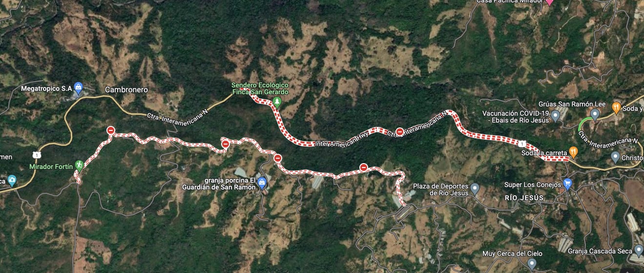 El Ministerio de Obras Públicas y Transportes (MOPT) informó que las rutas afectadas por las fuertes lluvias durante es domingo a las 10:45 a.m. son:
