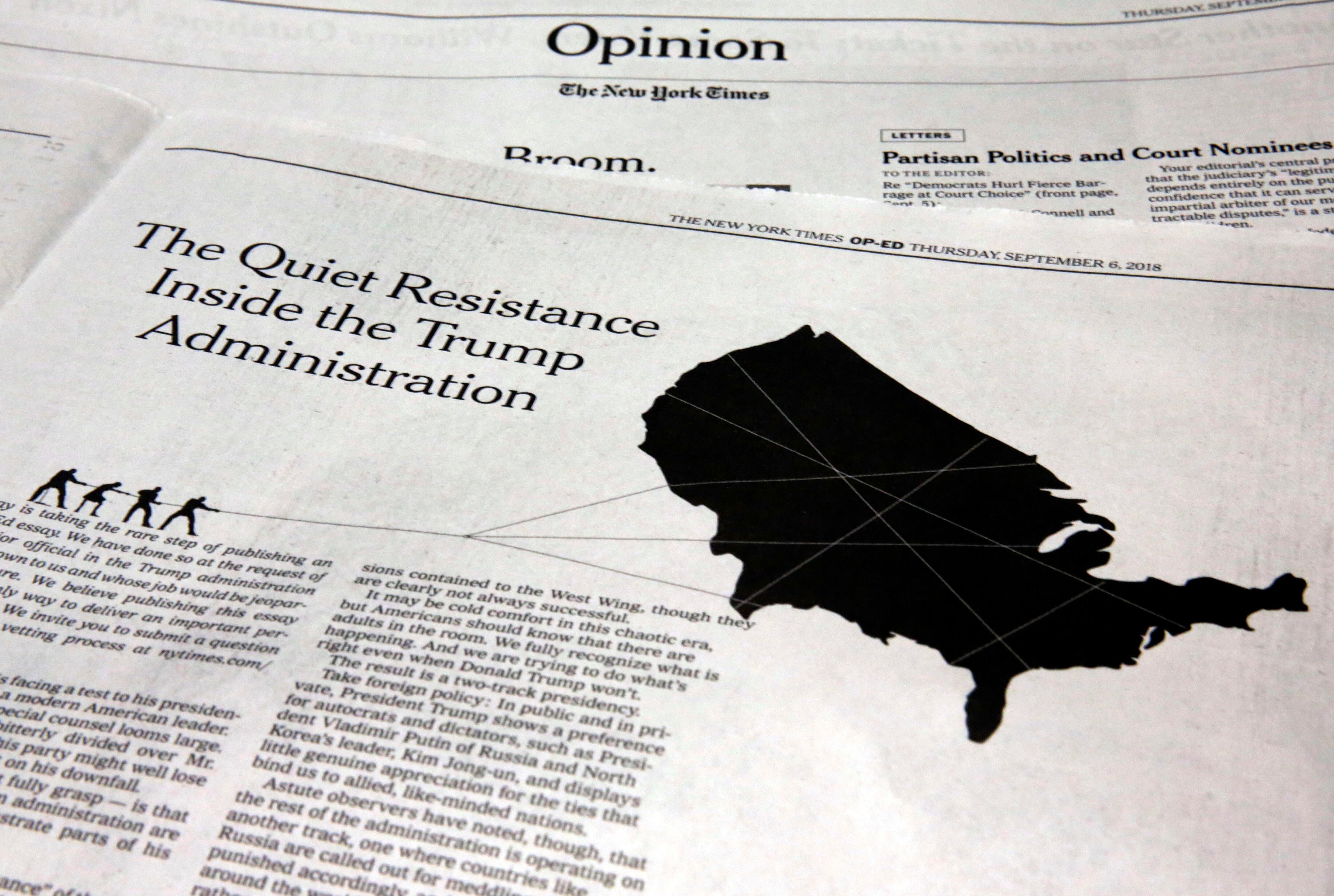 El impacto de este libro se ha multiplicado por la publicación en el New York Times, en la misma semana, de un artículo de opinión anónimo escrito por un alto funcionario de la administración de Trump, quien se presenta como un miembro de la “resistencia” dentro de la Casa Blanca y denuncia “la amoralidad del presidente”.