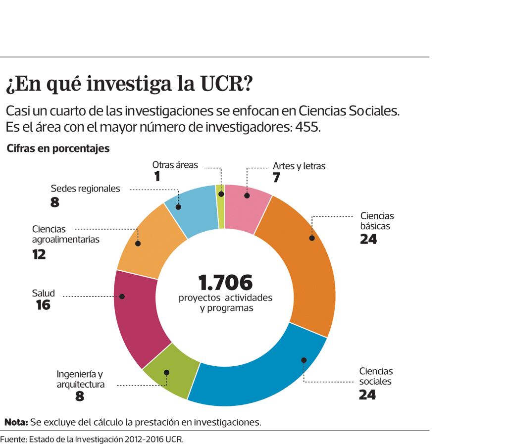 Los datos se desprenden del Informe del Estado de la Investigación 2012-2016 generado por la Vicerrectoría de Investigación de la UCR y de un análisis de datos de EF al listado de estudios generados por la institución en el 2015.