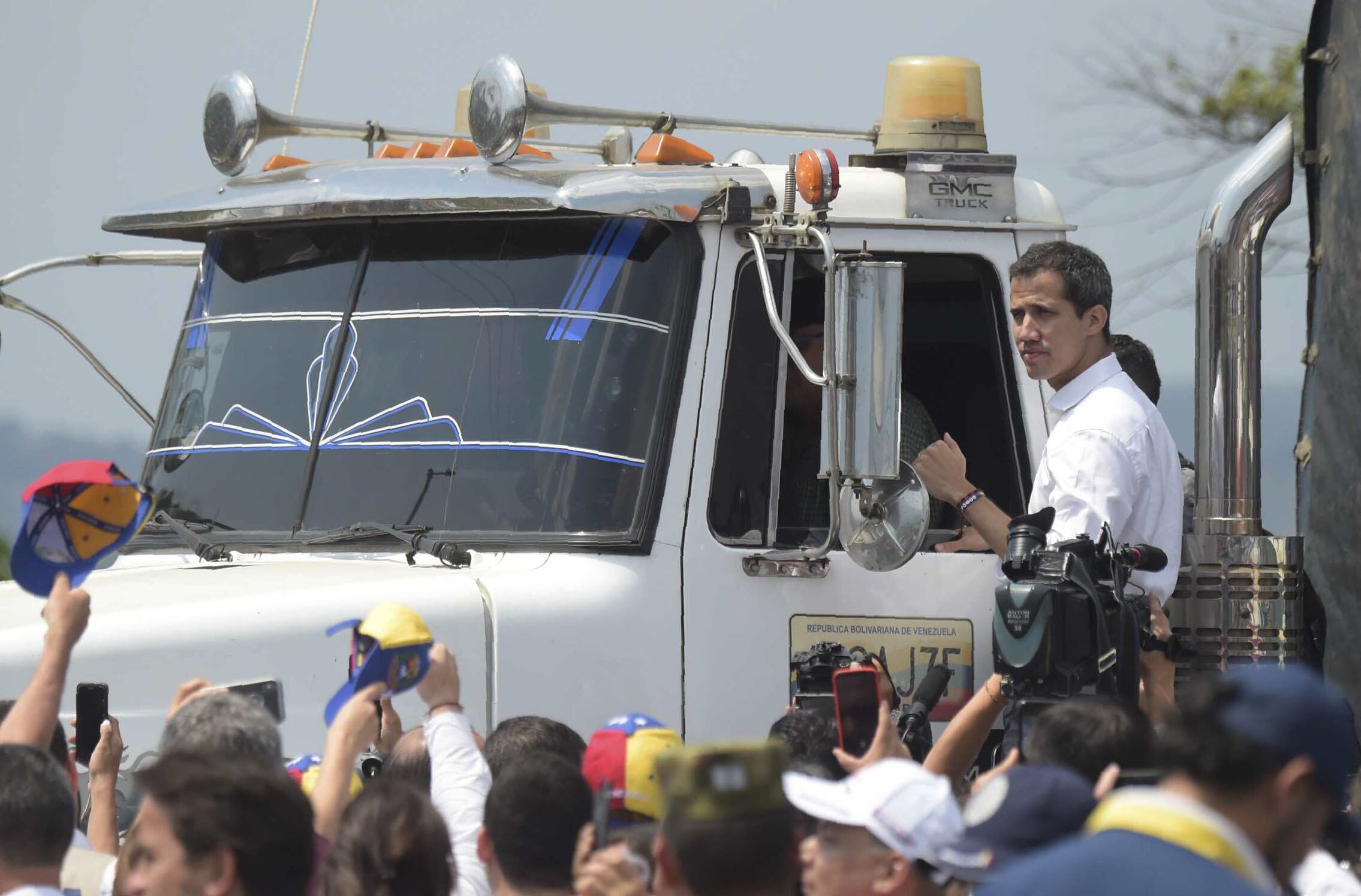 Unas 600 toneladas fueron acopiadas en la ciudad colombiana de Cúcuta, pero dos camiones fueron quemados en un puente fronterizo el sábado en el intento de entrada. Guaidó responsabiliza a Maduro, el gobierno asegura que fueron los mismos opositores.