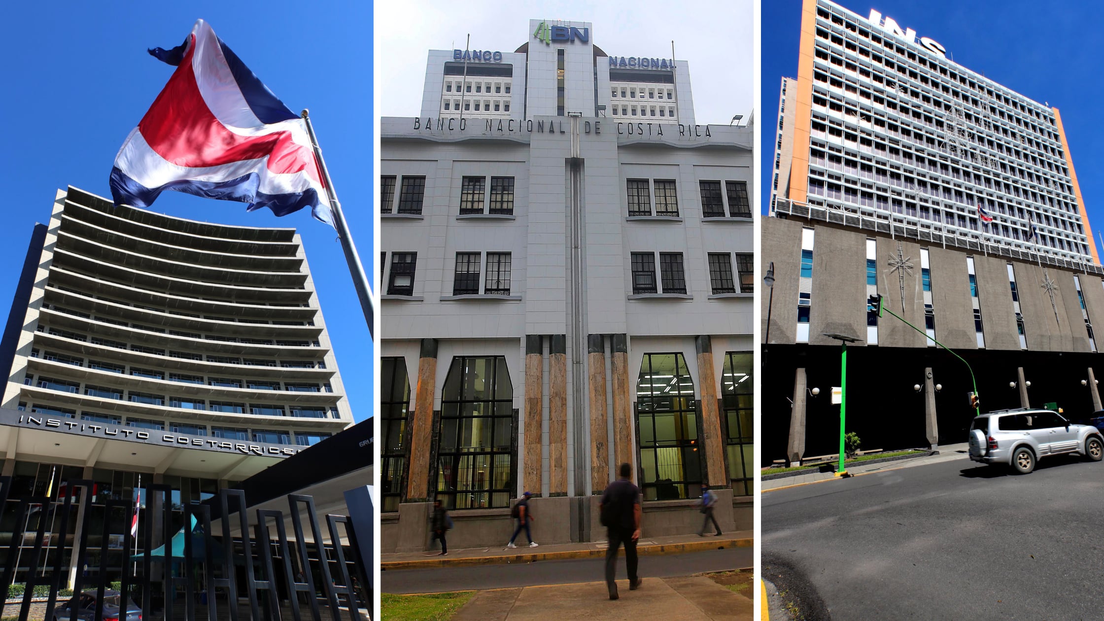 Están el Instituto Costarricense de Electricidad (ICE), Correos de Costa Rica, Sistema Nacional de Radio y Televisión (Sinart), Fábrica Nacional de Licores (Fanal), Instituto Costarricense de Ferrocarriles (Incofer) Instituto Nacional de Seguros (INS), Refinería Costarricense de Petróleo (Recope), Acueductos y Alcantarillados (AYA) y Junta de Protección Social (JPS).