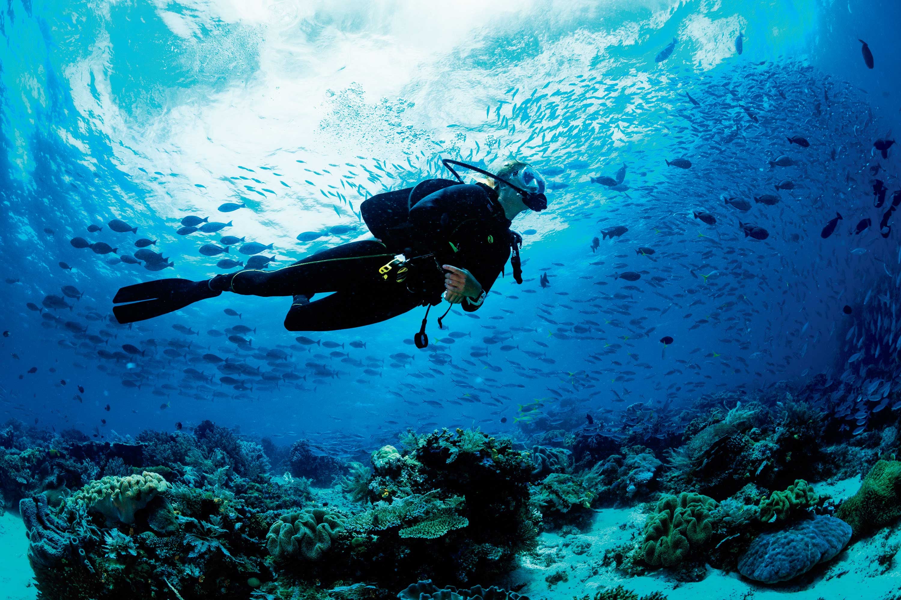 De esta forma, el buceador aficionado está listo para explorar la biodiversad submarina.