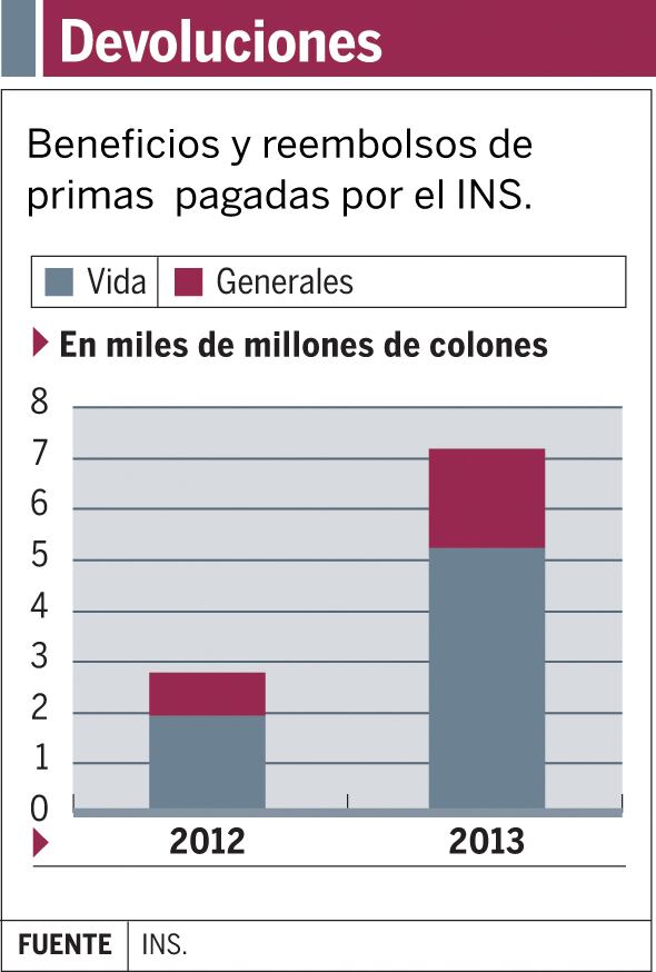 El Instituto Nacional de Seguros (INS) fue la única firma de las que funcionan en el país que incluyó en sus resultados financieros auditados el detalle de beneficios y extornos pagados. El crecimiento de este rubro entre el 2012 y el 2013 fue de 1,6 veces.