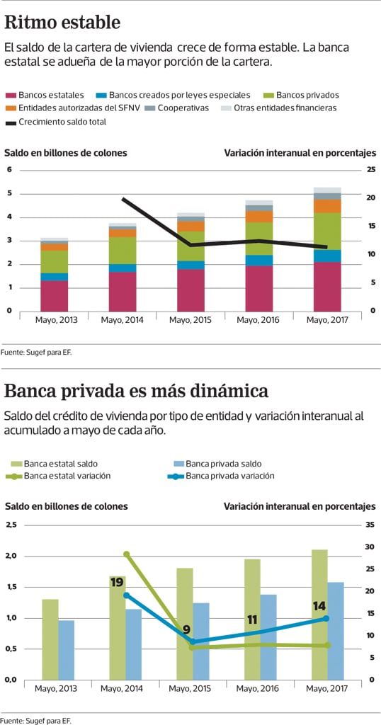 Estos resultados provienen del análisis del saldo principal de la cartera de créditos de vivienda a mayo 2017, con cifras de la Superintendencia General de Entidades Financieras (Sugef).