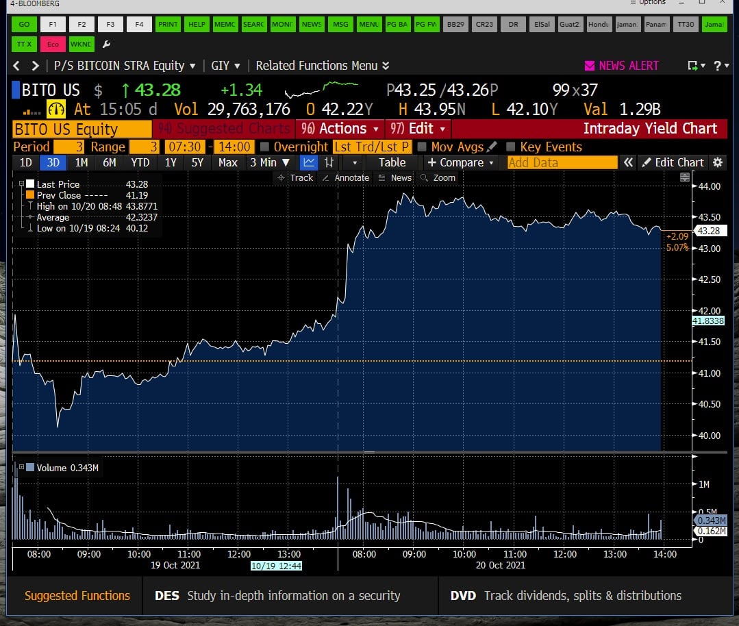 Con solo 48 horas en el mercado, Bito superó los $1.000 millones en activos convirtiéndose así en el ETF más rápido en alcanzar esa cifra en Wall Street según datos de Bloomberg Intelligence publicados en una noticia de ese medio de comunicación.