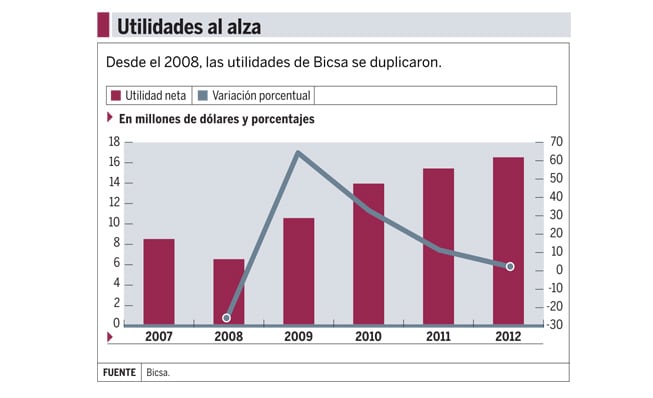 Mejor suerte tuvo con las utilidades netas que durante su administración rebasaron el doble al pasar de $6,4 millones en el 2008 a $16,17 millones en el 2012, según se registra en los estados financieros de Bicsa.