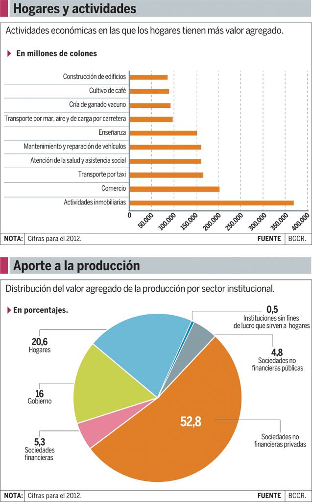 De acuerdo con datos del BCCR, el porcentaje de los hogares en el valor agregado de Costa Rica (21%) para el 2012 es inferior al de otros países de la región, pues en Guatemala fue de 37% y en Nicaragua del 43%, en el 2007 , pero es similar a regiones con países desarrollados como los de la Zona Euro, que alcanzó el 22% en el 2012.