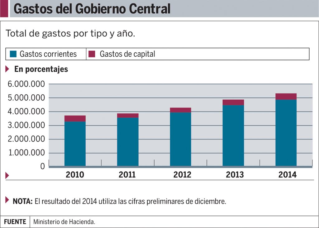 La mayoría de rubros que componen el gasto redujeron el ritmo de crecimiento en el 2014, pero hay excepciones.