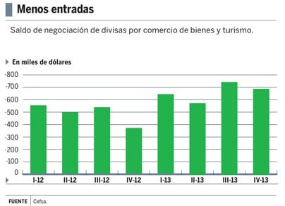 Esa oferta presionó a la baja el tipo de cambio y obligó al Banco Central a comprar divisas por $1.322 millones en el 2012 y $910 millones en el 2013 para defender el piso de la banda cambiaria.