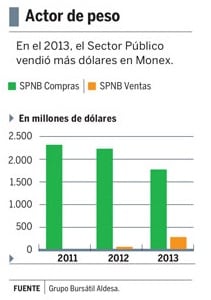 Las compras del Sector Público No Bancario (SPNB) han aumentado desde finales del 2013. En noviembre del año anterior estas sumaron $85 millones, y $94,2 millones en diciembre. Sin embargo, en enero, el SPNB adquirió $178,1 millones en Monex.