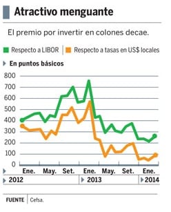 Sin embargo, de esos $2.000 millones (obtenidos en las emisiones de noviembre del 2012 y abril del 2013), al Ministerio de Hacienda solo le quedan los recursos necesarios para hacerle frente a los vencimientos de bonos en moneda extranjera; el próximo será en marzo.