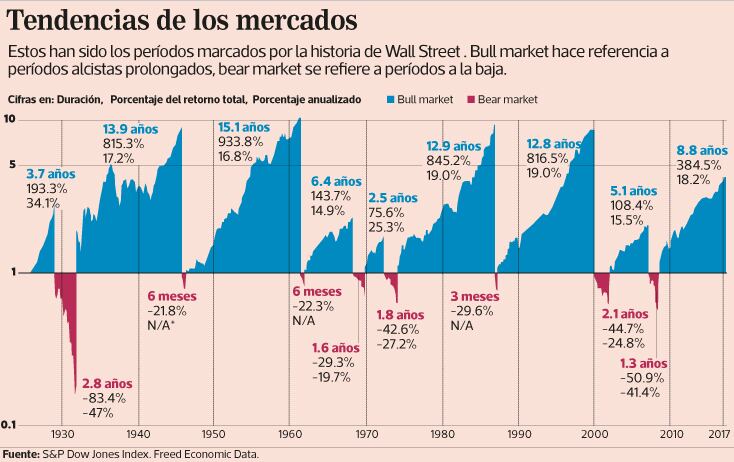 Desde el 2009, el mercado ha venido en una carrera alcista, algo que se le conoce como mercado de toros.