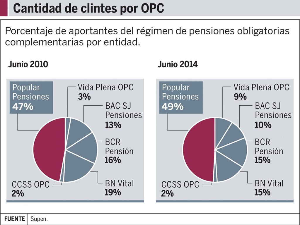 Al desglosar esta cifra por OPC, la que obtuvo un mayor crecimiento en sus activos netos fue Popular Pensiones, con un repunte del 190%; seguida de BAC Pensiones y Vida Plena, que subieron un 174,2% y 167,8%, respectivamente.