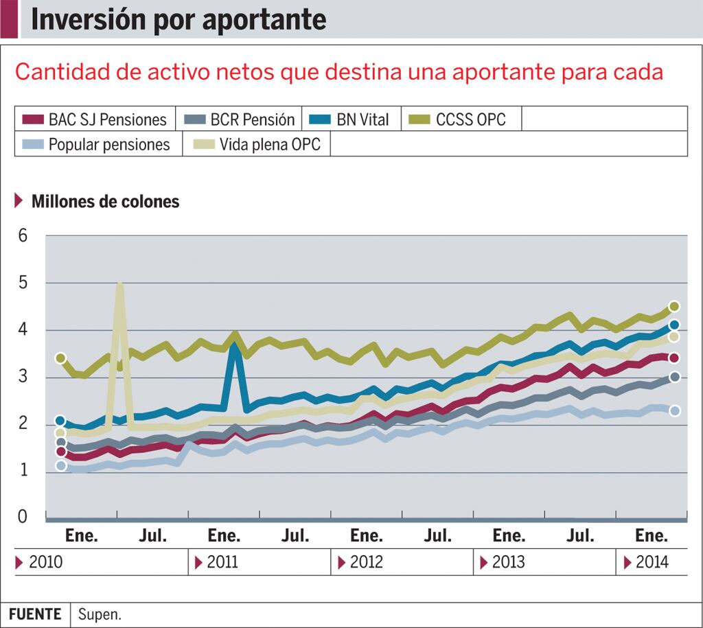 De acuerdo con la Superintendencia de Pensiones (Supen), Popular Pensiones percibe un promedio de ¢2,2 millones por persona (activos netos entre cantidad de aportantes).