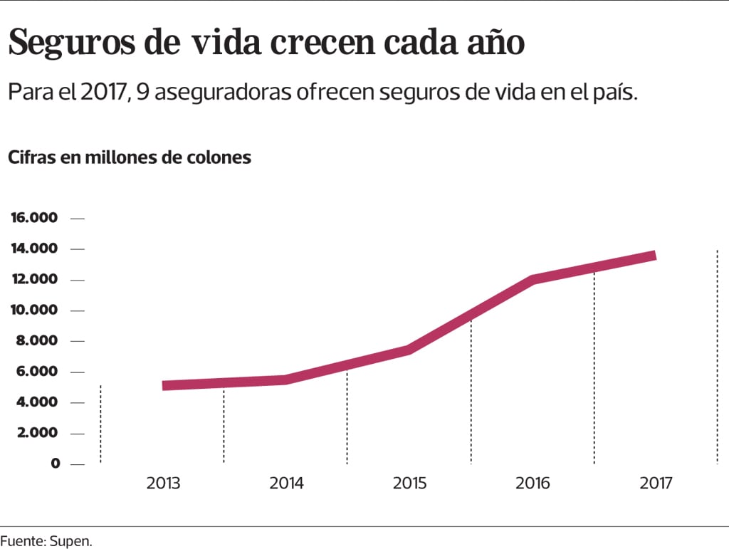 En enero del 2010, el ingreso por las primas alcanzaron ¢2.107 millones, pero siete años más tarde ascendieron a ¢13.644 millones. Solo entre el 2015 y el 2016, este producto subió un 13%.