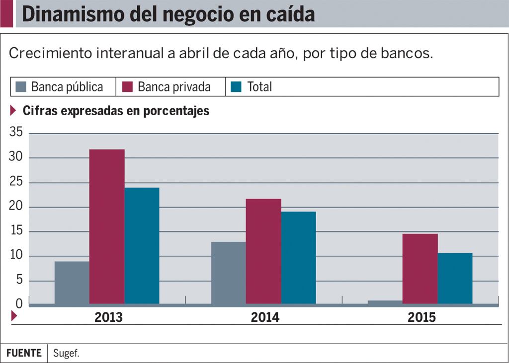 Al desglosar el resultado por tipo de entidad, el crecimiento de los bancos públicos fue de 1% a abril pasado, en contraste con el 12% del 2014.