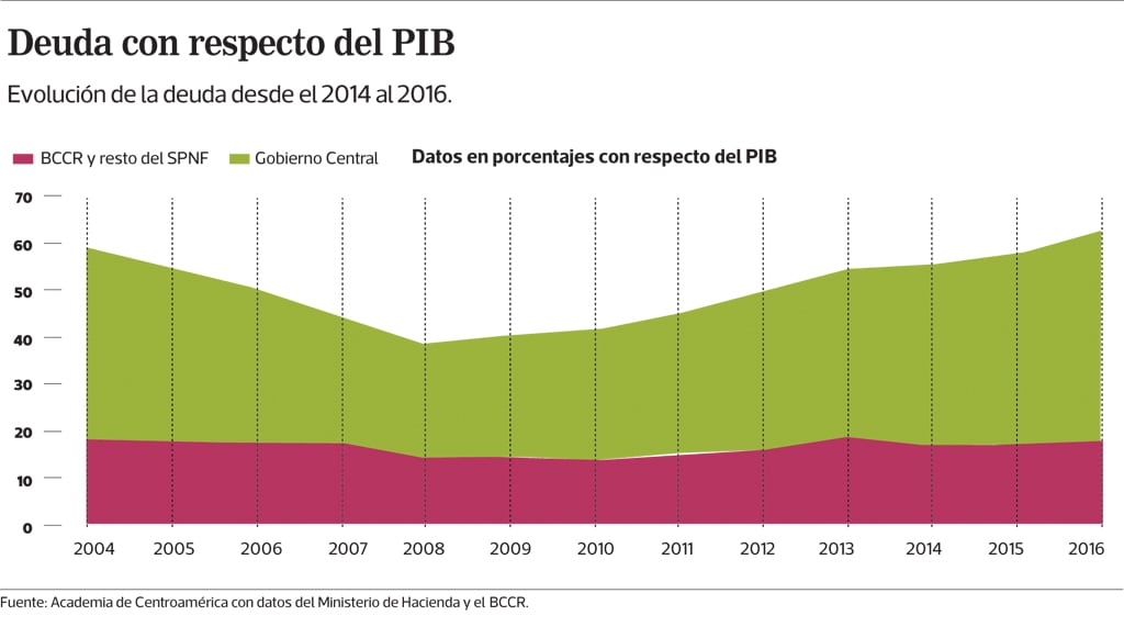 En el 2016, la deuda pública del país representó el 63% del PIB, y solo la del Gobierno Central, el 43%.