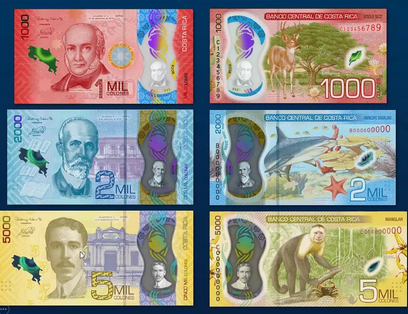 Por ejemplo, las cinco denominaciones incorporan una ventana transparente como la que tiene el billete de ¢1.000 pero más amplia y visible. Además, se mantienen los mismos personajes, motivos, tonalidades y tamaño respecto a los que circulan actualmente.