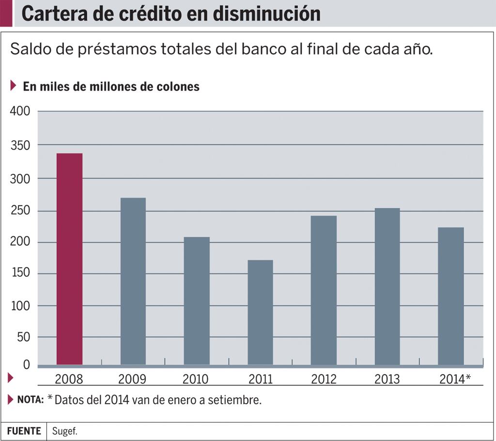 Entre el 2009 y el 2011, el banco tuvo una fuerte caída en las ganancias (pérdidas en el último) y se recuperó en el 2012, pero a setiembre pasado solo ha ganado un 30% de lo que ganó en 2013.