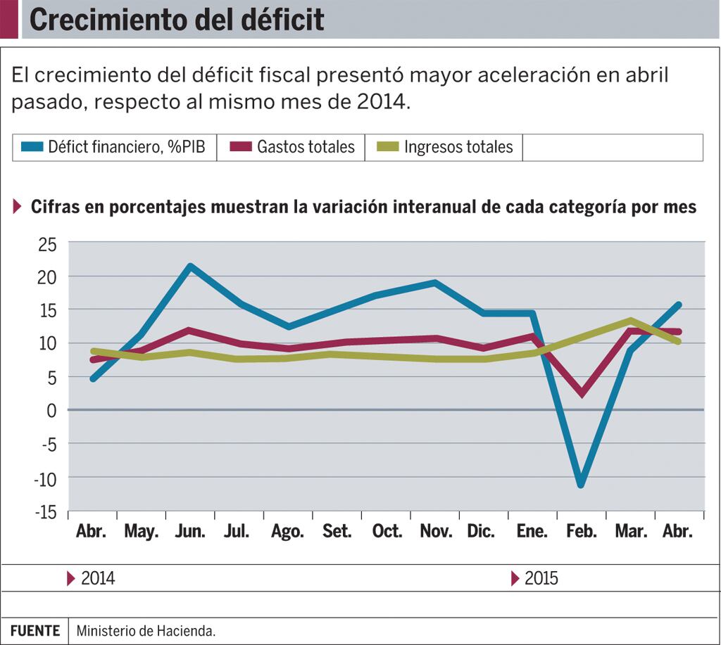 El pago de intereses de la deuda interna y externa fue uno de los causantes: en los primeros cuatro meses de 2015, los intereses de la deuda crecieron un 24%.