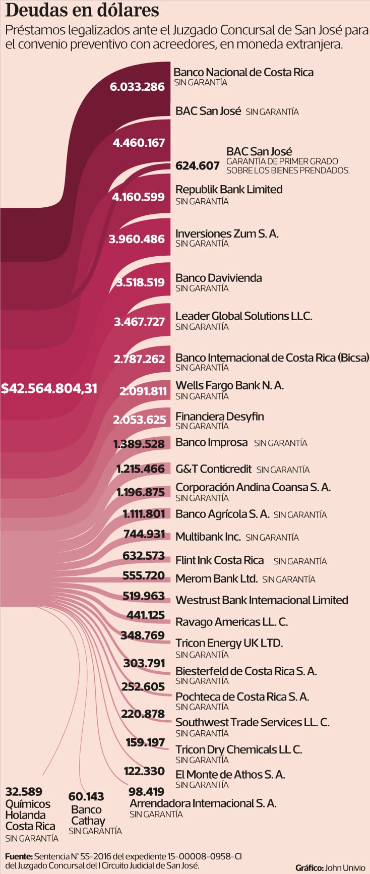 Yanber también obtuvo dos créditos con el Banco Nacional de Costa Rica (BNCR), por $6 millones y ¢2.144 millones, pero solamente el segundo préstamo estaba garantizado sobre bienes fideicometidos.